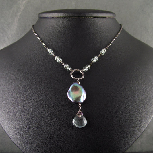 Moss aquamarine necklace, handmade sterling silver & pearl necklace-OOAK
